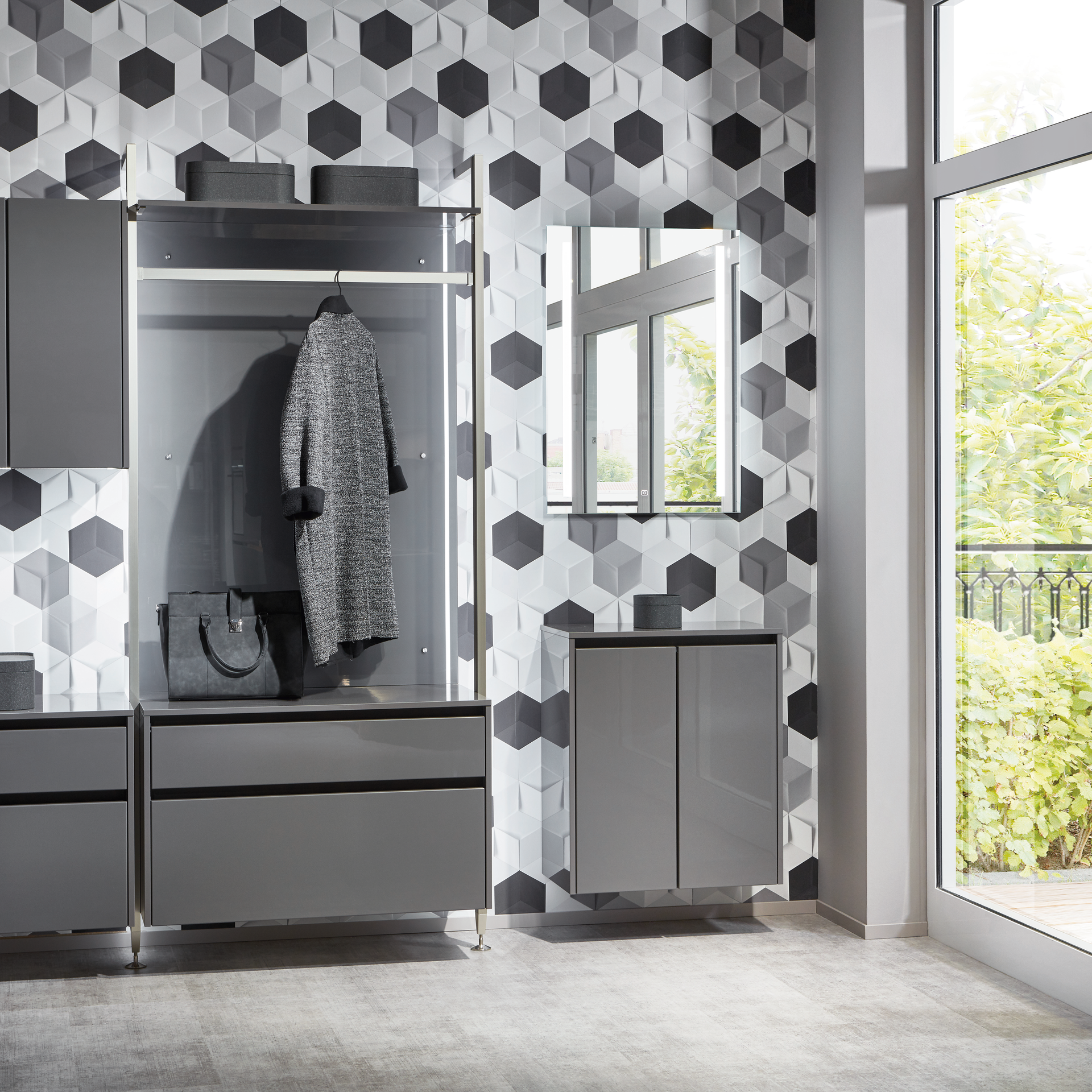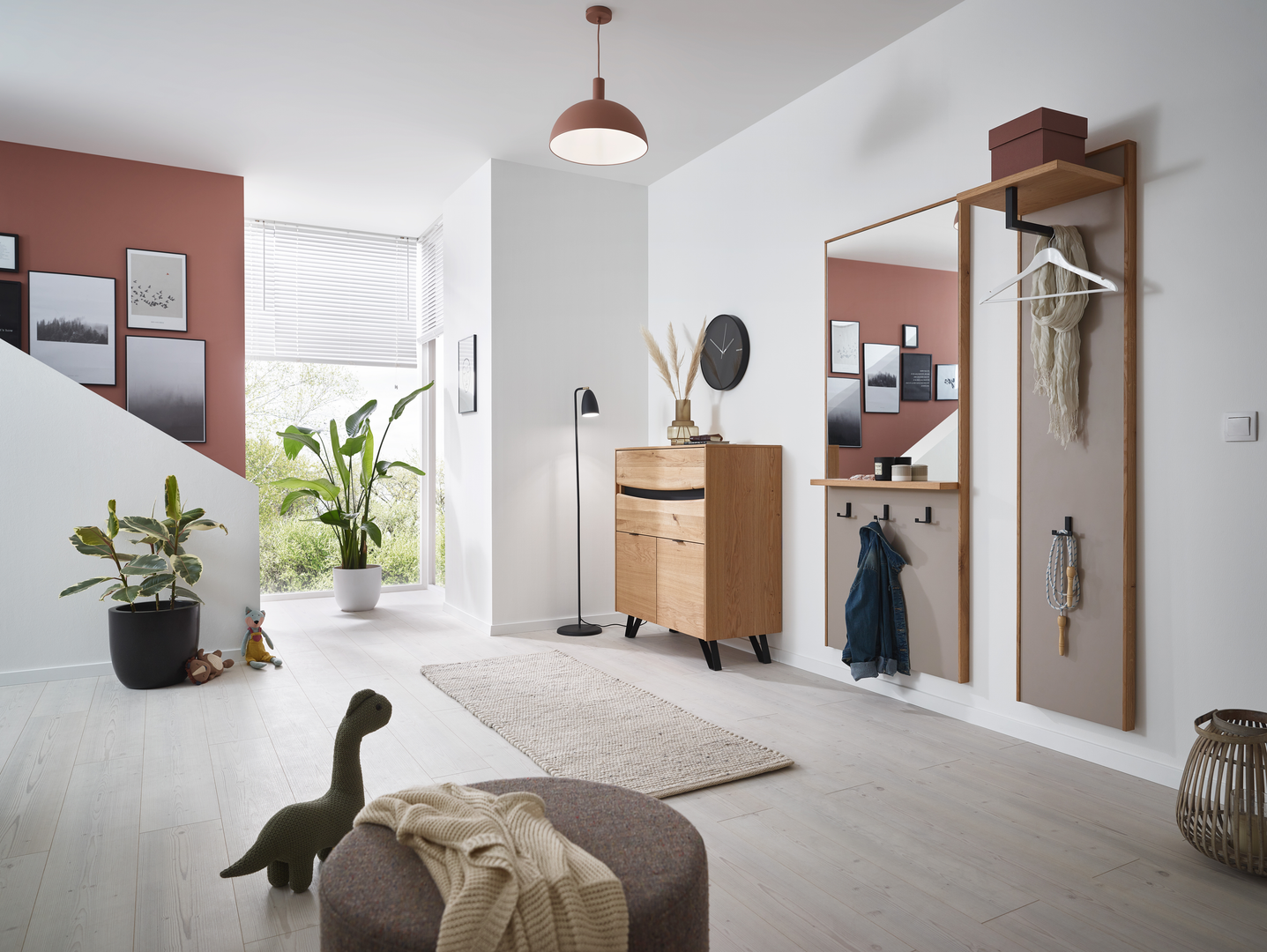 Als Visitenkarten für die eigenen 4 Wände vermittelt der Garderobenbereich den Designeinstieg in Ihre Wohnung. Außerdem bietet er Stauraum für alles, was man beim Kommen und Gehen so braucht. Von den Gummistiefeln bis zur Hutablage. Die Handtaschen, Mäntel, Mützen und viele weitere Accessoires nicht zu vergessen.
